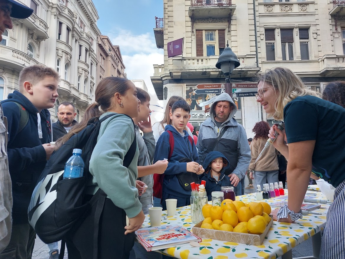 On a Friday evening, Belgrade was buzzing with science. Streets, galleries, museums, and science stations were filled with curious eyes, questions, experiments—and lemonade! The European Researchers’ Night once again proved how science becomes magical when it’s shared with children, parents, and volunteers who believe in the power of knowledge.